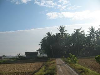 Sepulang dari rumahnya, sampai di daerah Ngangkruk tanpa sengaja melihat ke langit sebelah utara. Subhanallaah... formasi awannya begitu indah, lurus menggulung seperti ombak. Ini merupakan suatu fenomena keajaiban ciptaan Allah SWT yang baru pertama kali aku lihat dengan mata kepalaku sendiri. Keajaiban ciptaan Allah di Kulon Progo. Berikut foto yang berhasil saya abadikan: